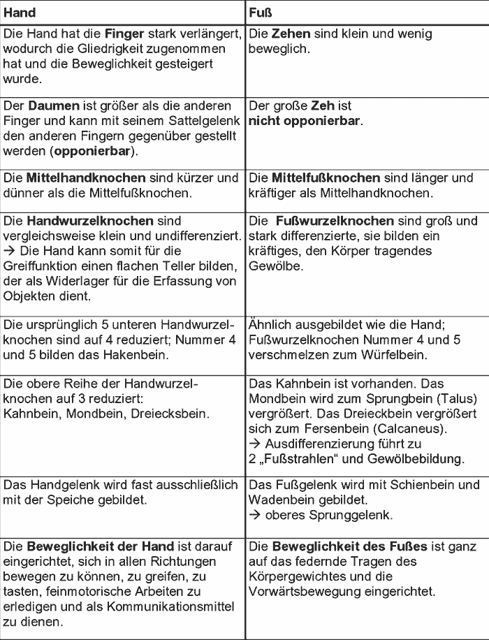 Start > Biologie > Humanbiologie > Organsysteme > Skelett > Vergleich Hand/Fuß